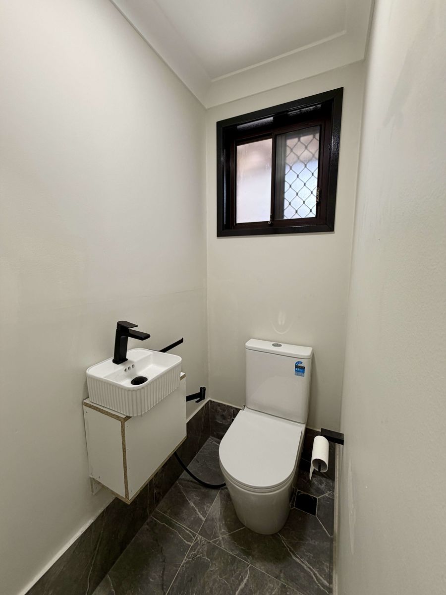 - Recently renovated modern common bathroom tiled to ceiling with shower screen
