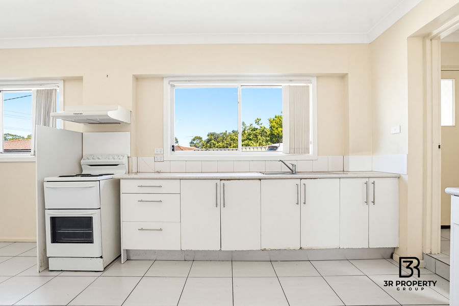 - Kitchen with electric cooktop, rangehood and ample cupboard space