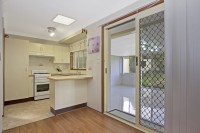 - Gas cook-top tiled kitchen boosting with wooden floorboards in dining area and living areas