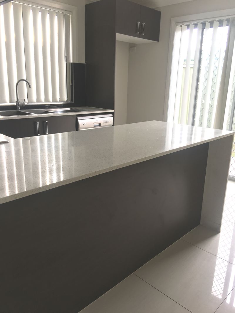 steel appliances, tiled splash back and ample cupboard space