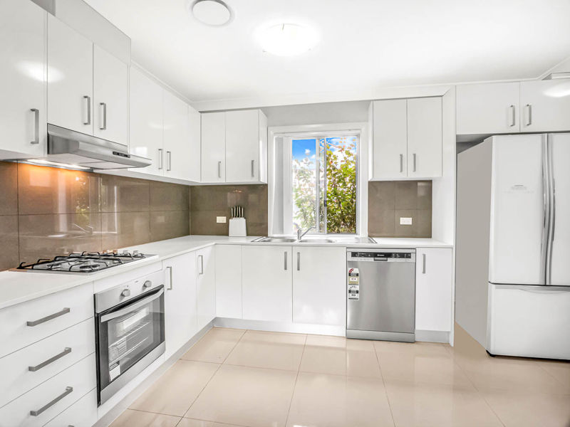 -Modern gas cook top kitchen with dish washer, tiled splash back, ducted