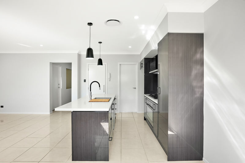 -Modern kitchen with 900 mm 5 burners gas cook top, 40 mm stone bench top, extra separate pantry, dishwasher, stone bench top island breakfast bar, ducted stainless steel range hood, glass splash back, steel appliances & ample storage space
