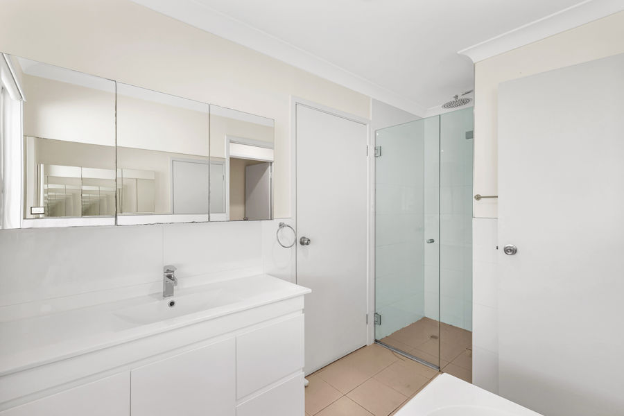 - Two way bathroom with bath tub & shower screen