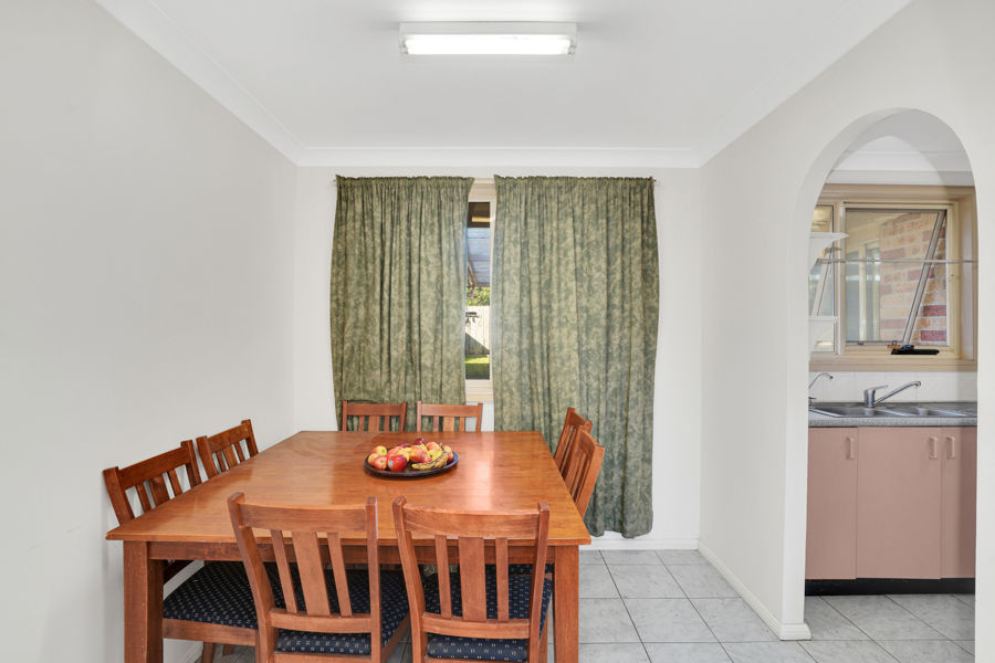 - Tiled formal dining & kitchen with gas cooktop, dishwasher, and ample storage