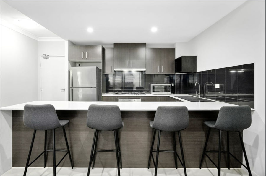 bench top, steel appliances, breakfast bar & ample storage