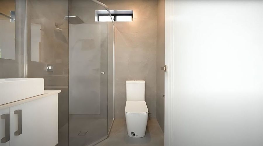 - Modern bathroom tiled to ceiling with shower screen & toilet