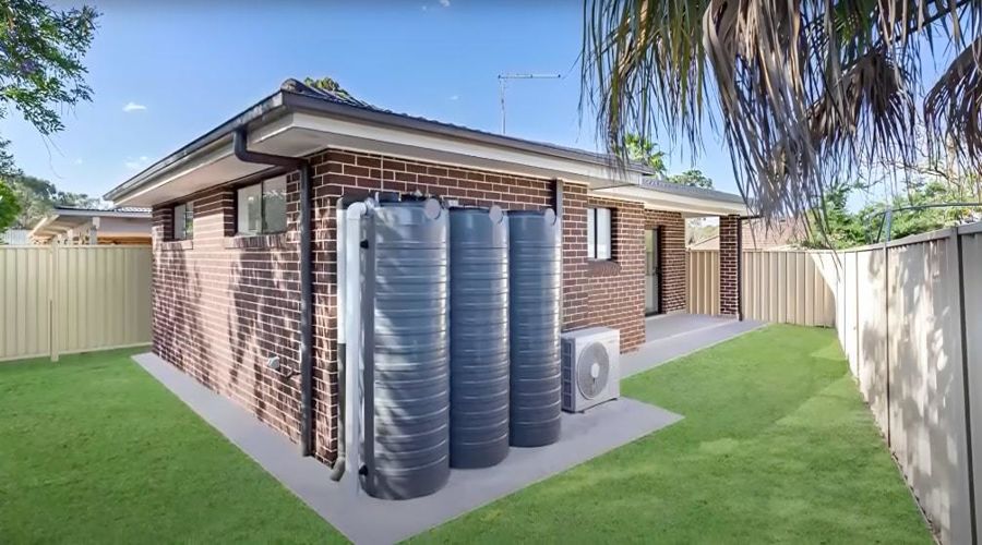 Highlighted features: 2 zone duct air conditioning, 2x toilets, downlights, dishwasher, rainwater tank, TV connection