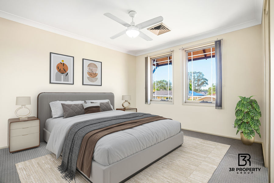 - Three spacious bedrooms with carpet, ceiling fans & built ins to all