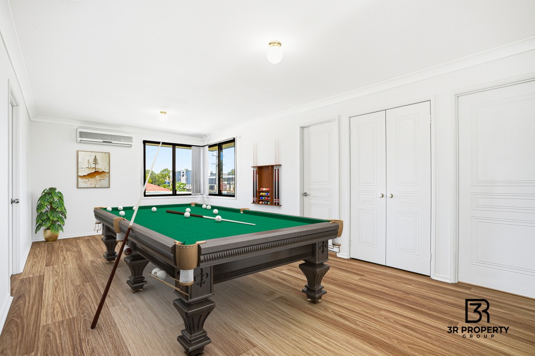 - Oversized rumpus area with split aircon, gas connection, perfect for an extra living area or entertainment