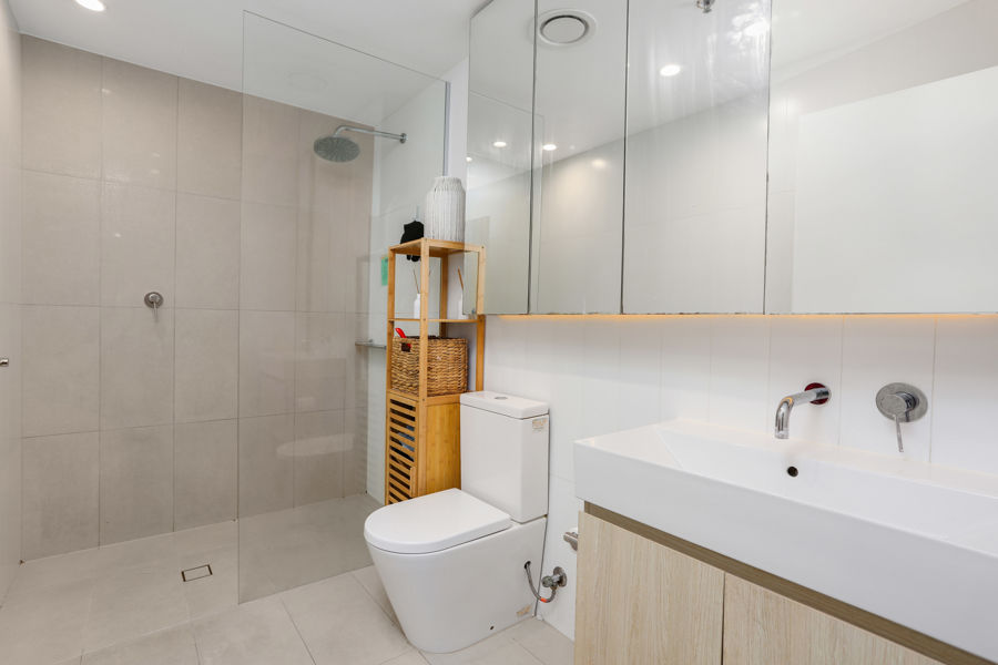 - Modern Master ensuite tiled-to-ceiling with shower & toilet